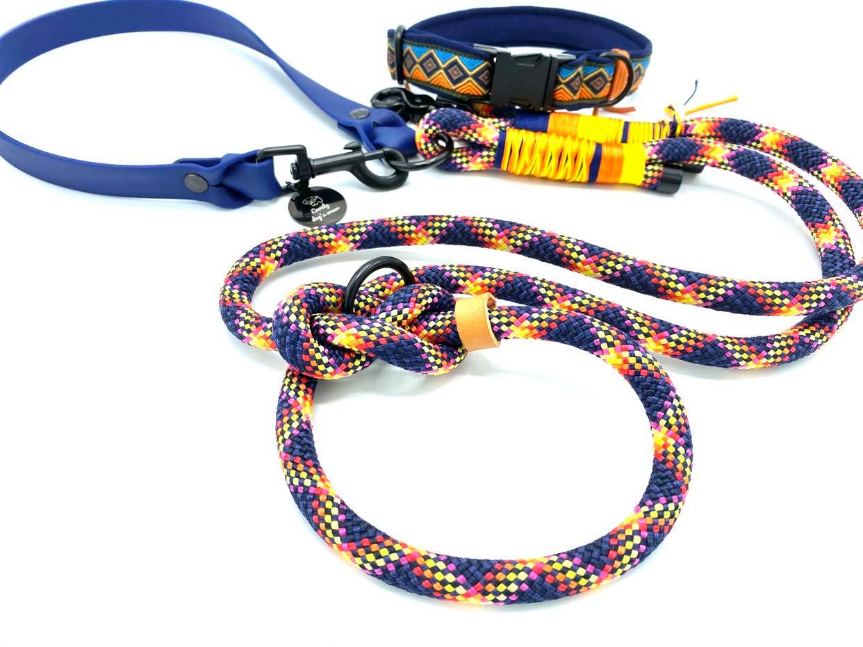 Smycz przepinana została wykonana z liny PPM jakości Premium o szerokości 10mm w połączeniu z taśmą Biothane . Przepięcie umożliwia skrócenie smyczy i ewentualne przepięcie wokół pasa właściciela co ułatwia spacery, gdy pies mocno ciągnie. Istotną zaletą jest wykorzystywanie do produkcji smyczy okuć najwyższej jakości. Okucia, których używamy wykonane są z elementów stali nierdzewnej o podwyższonej wytrzymałości oraz z mosiądzu ( zalecane!). Posiadamy również okucia czarny mat i kolor różowego złota. Standardowa długość 150 cm, 200 cm, 250 cm, 300 cm jednak możemy wykonać rozmiar na zamówienie . Polecamy w komplecie z szelkami lub obrożą. Wszystkie nasze produkty wykonujemy na zamówienie klienta . Czas realizacji od 5 do 10 dni roboczych.