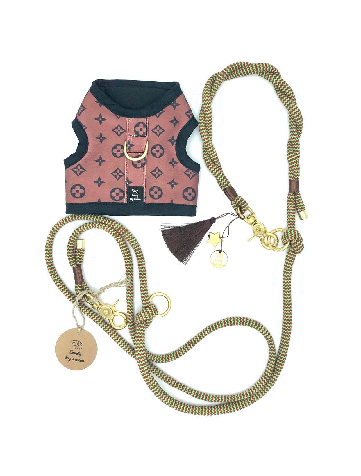 Miękkie , wygodne szelki, kamizelka wykonane z eleganckiego sygnowanego materiału w ceglastym kolorze podszyte ciepłym futerkiem dla marznących psiaków. Zapinane są na rzepy, które pozwalają na regulację, gdy piesek rośnie i są łatwe w zakładaniu. Istotną zaletą jest wykorzystywanie do ich produkcji okuć najwyższej jakości. Okucia, których używamy wykonane są z elementów stali nierdzewnej o podwyższonej wytrzymałości oraz z mosiądzu ( zalecane!) Posiadamy również okucia czarny mat i kolor różowego złota. Szelki pięknie komponują się ze smyczą z liny z serii Zigzag Lime&Wine czy w klasycznej czerni .Wykonujemy standardowe rozmiary, jednak możemy wykonać na konkretny podany wymiar.