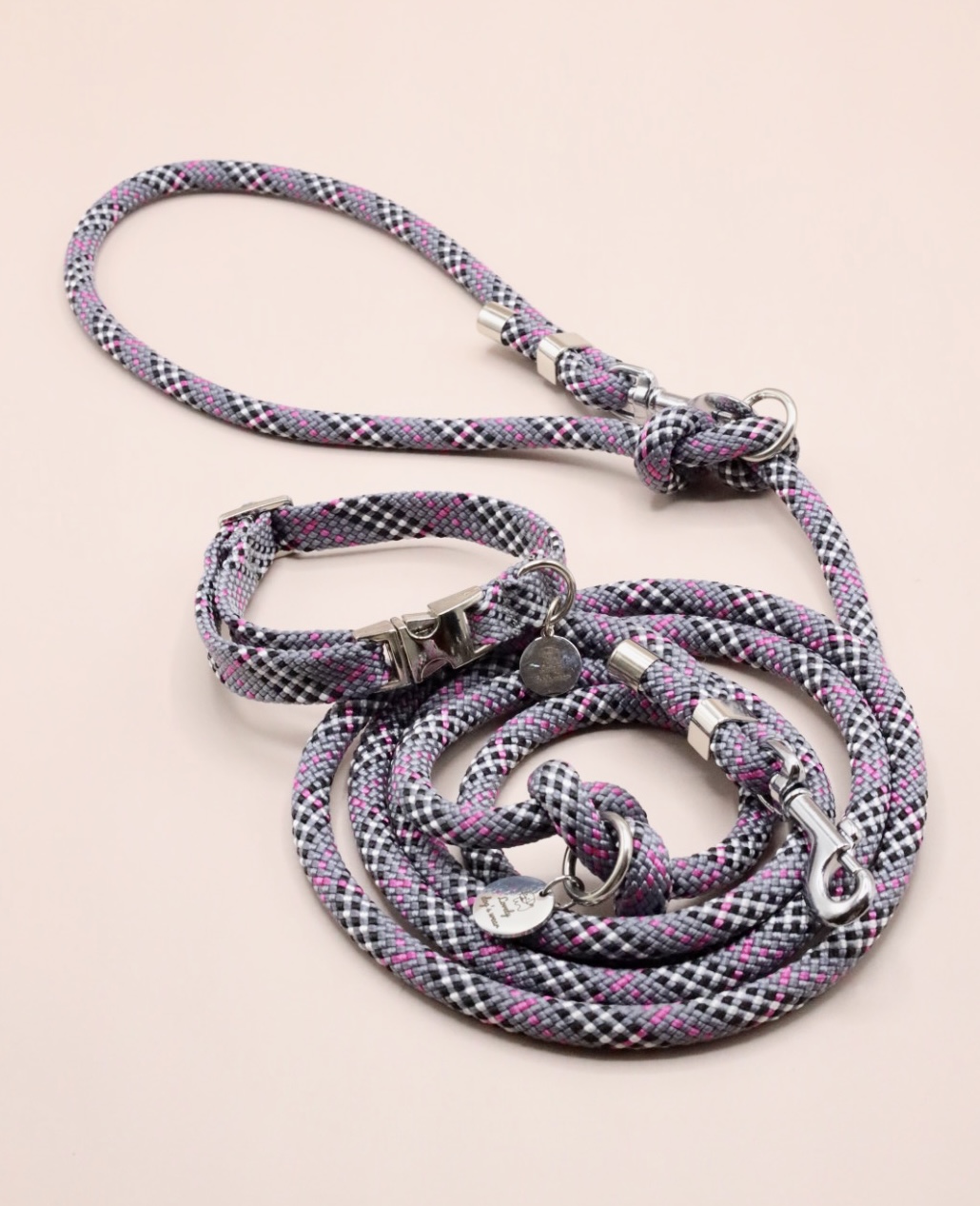 Kolor: szary, czarny , biały , fuksja, seria:Gray Black, model: smycz przepinana