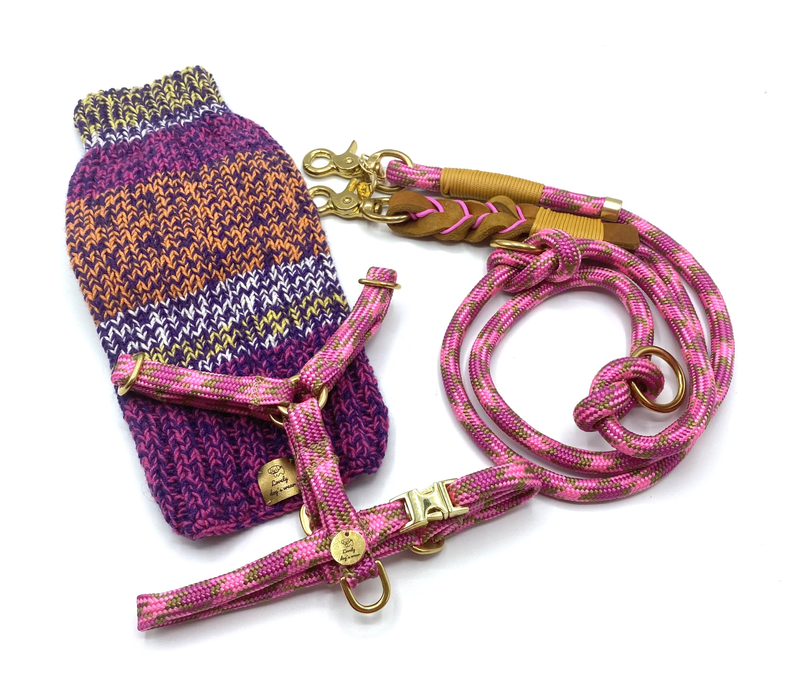 Sweterek wykonany ręcznie z mięciutkiej, naturalnej, ciepłej wełny z Merynosów. Wełna ta, jest miła w dotyku, elastyczna, co ułatwia nam zakładanie sweterka na psiaka. Polecamy w komplecie ze smyczą i szelkami. Standardowo bez rękawków, możemy wykonać z rękawkami.