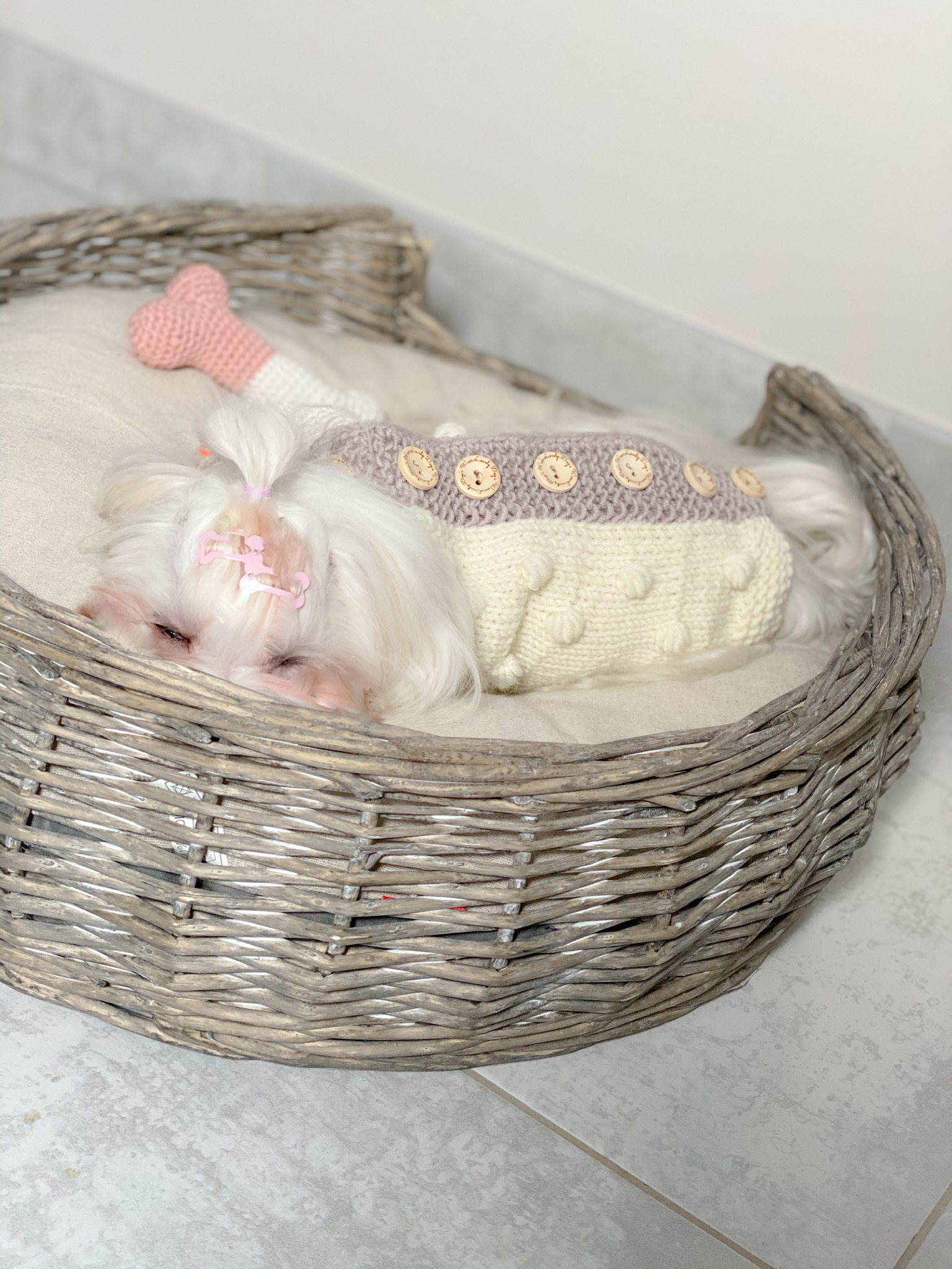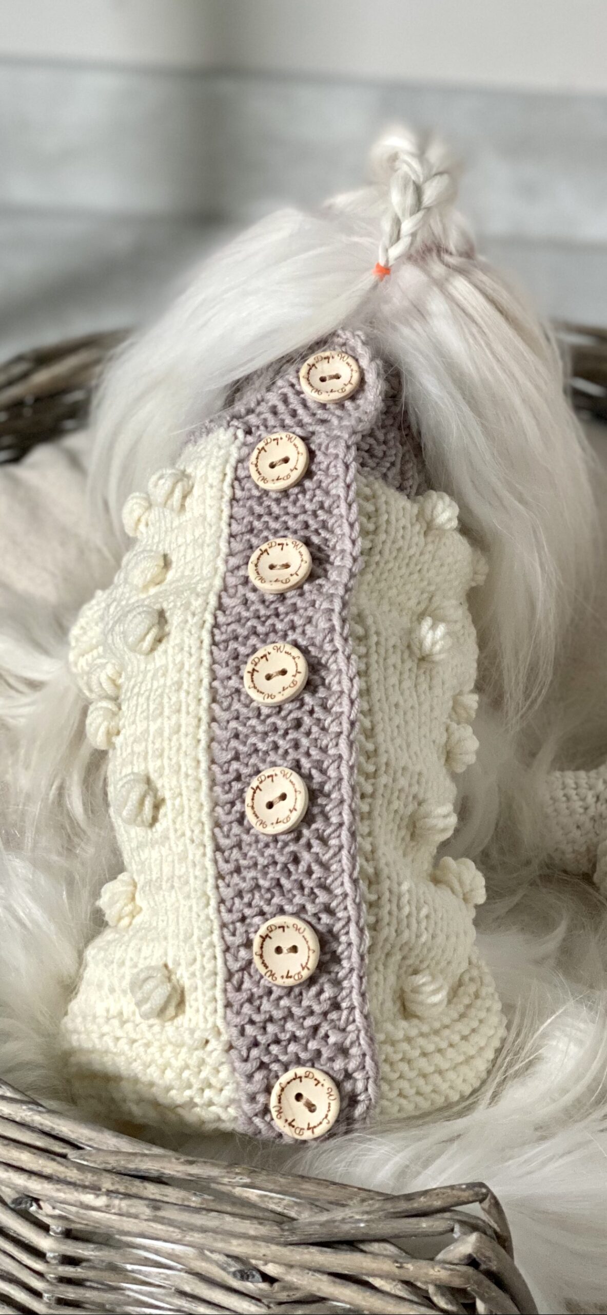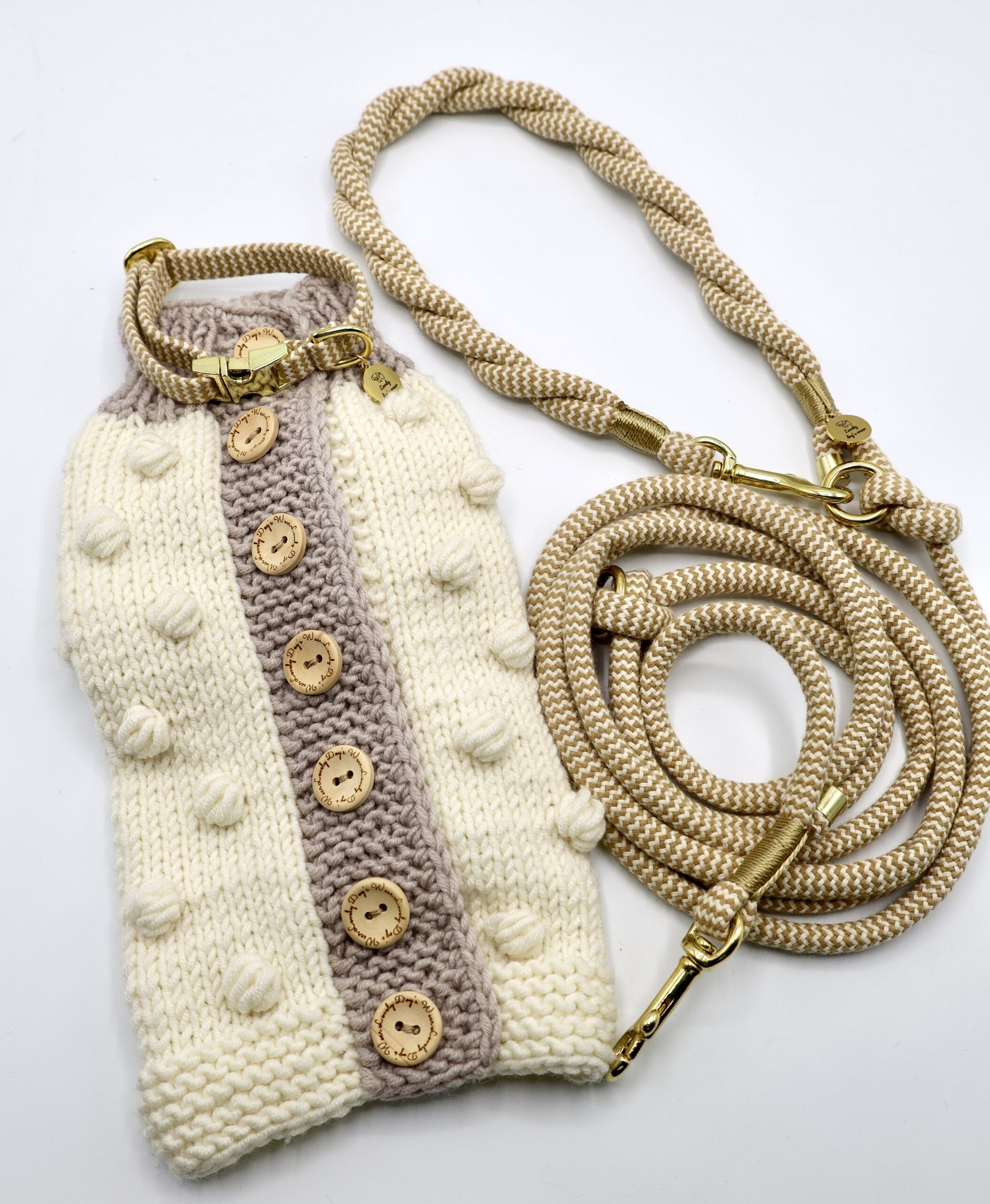 Sweterek wykonany ręcznie z mięciutkiej, naturalnej, ciepłej wełny z Merynosów. Wełna ta, jest miła w dotyku, elastyczna . Sweter jest zapinany na drewniane guziki, co ułatwia nam zakładanie sweterka na psiaka. Standardowo bez rękawków, możemy wykonać z rękawkami. Polecamy w komplecie ze smyczą i szelkami.