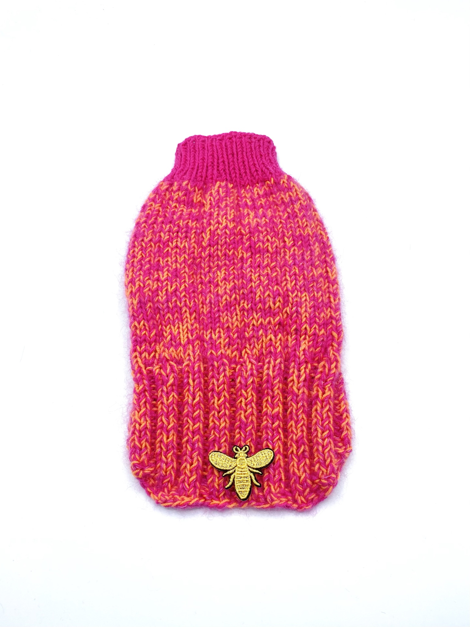 Sweterek wykonany ręcznie z mięciutkiej, naturalnej, ciepłej wełny z Merynosów i Moheru z jedwabiem. Wełna ta, jest miła w dotyku, elastyczna, co ułatwia nam zakładanie sweterka na psiaka. Polecamy w komplecie ze smyczą i szelkami. Standardowo bez rękawków, możemy wykonać z rękawkami.