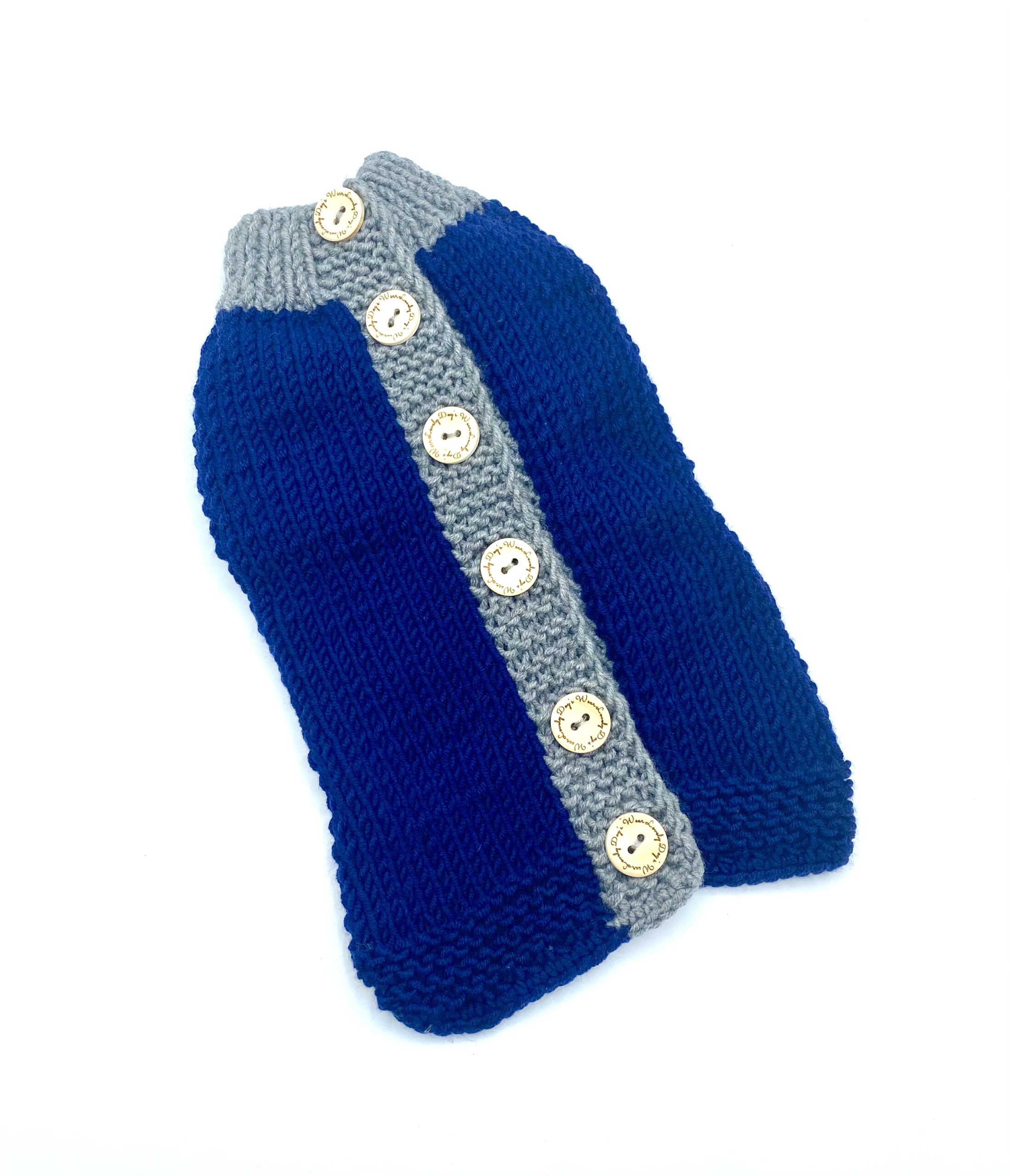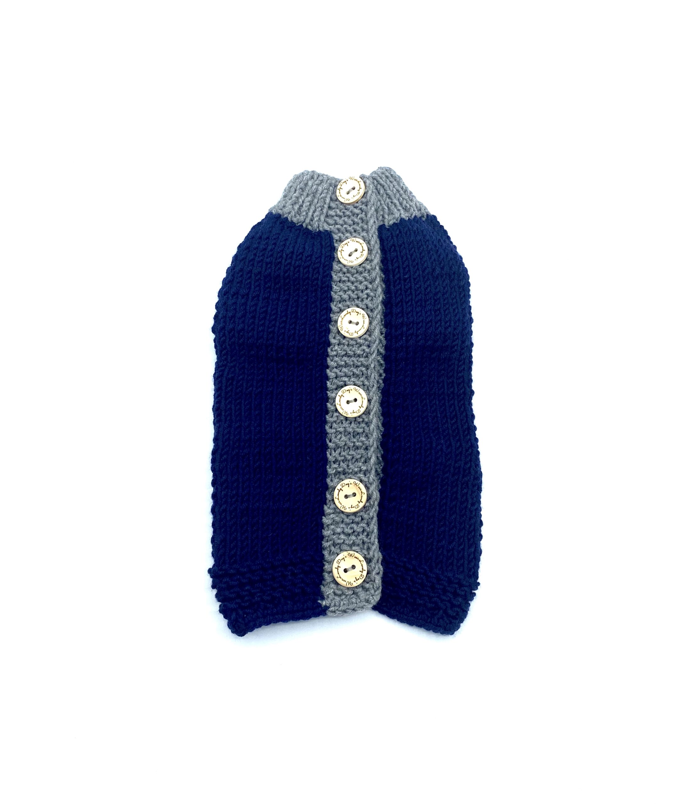 Sweterek wykonany ręcznie z mięciutkiej, naturalnej, ciepłej wełny z Merynosów. Wełna ta, jest miła w dotyku, elastyczna . Sweter jest zapinany na drewniane guziki, co ułatwia nam zakładanie sweterka na psiaka. Standardowo bez rękawków, możemy wykonać z rękawkami.Polecamy w komplecie ze smyczą i szelkami.