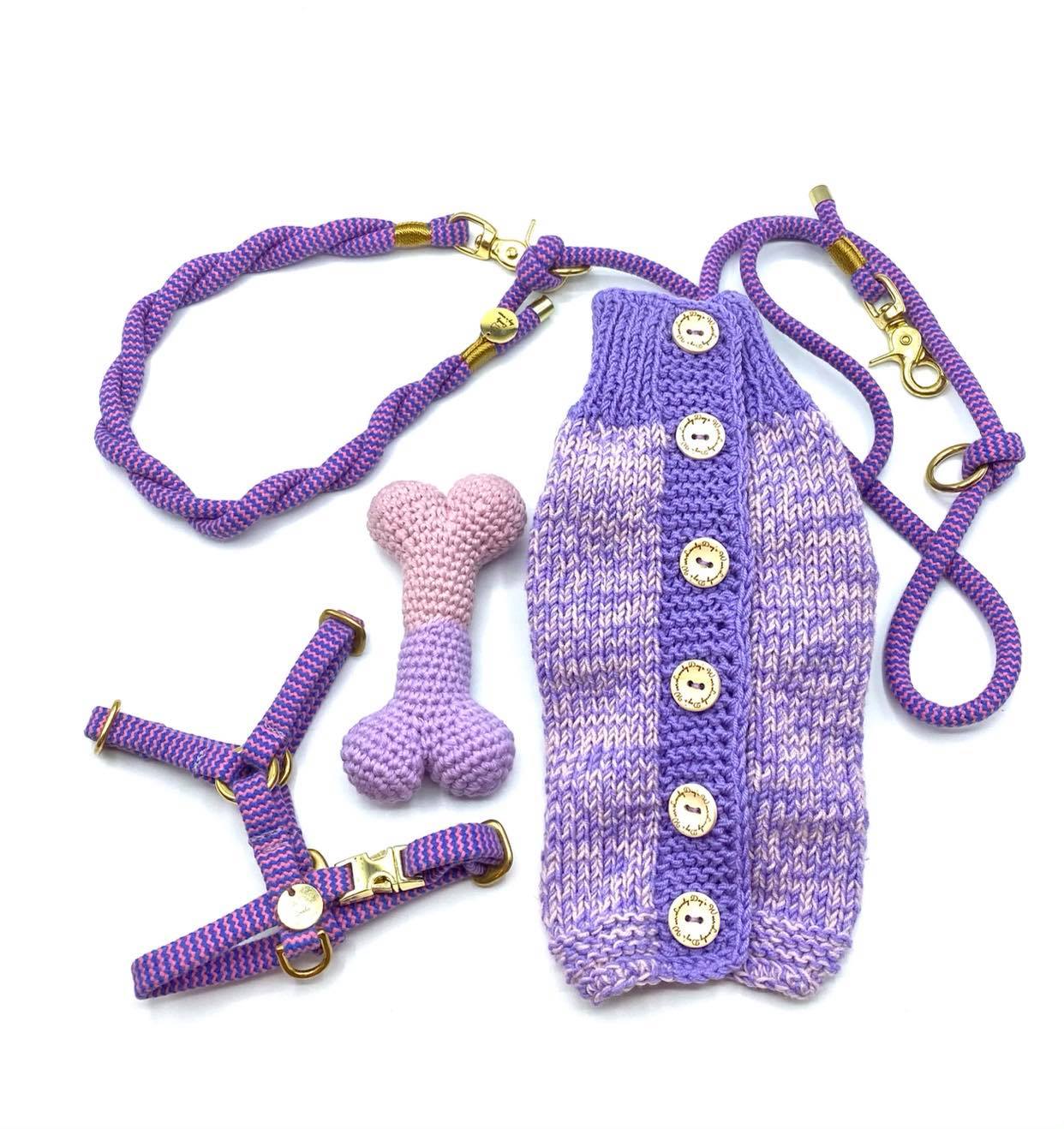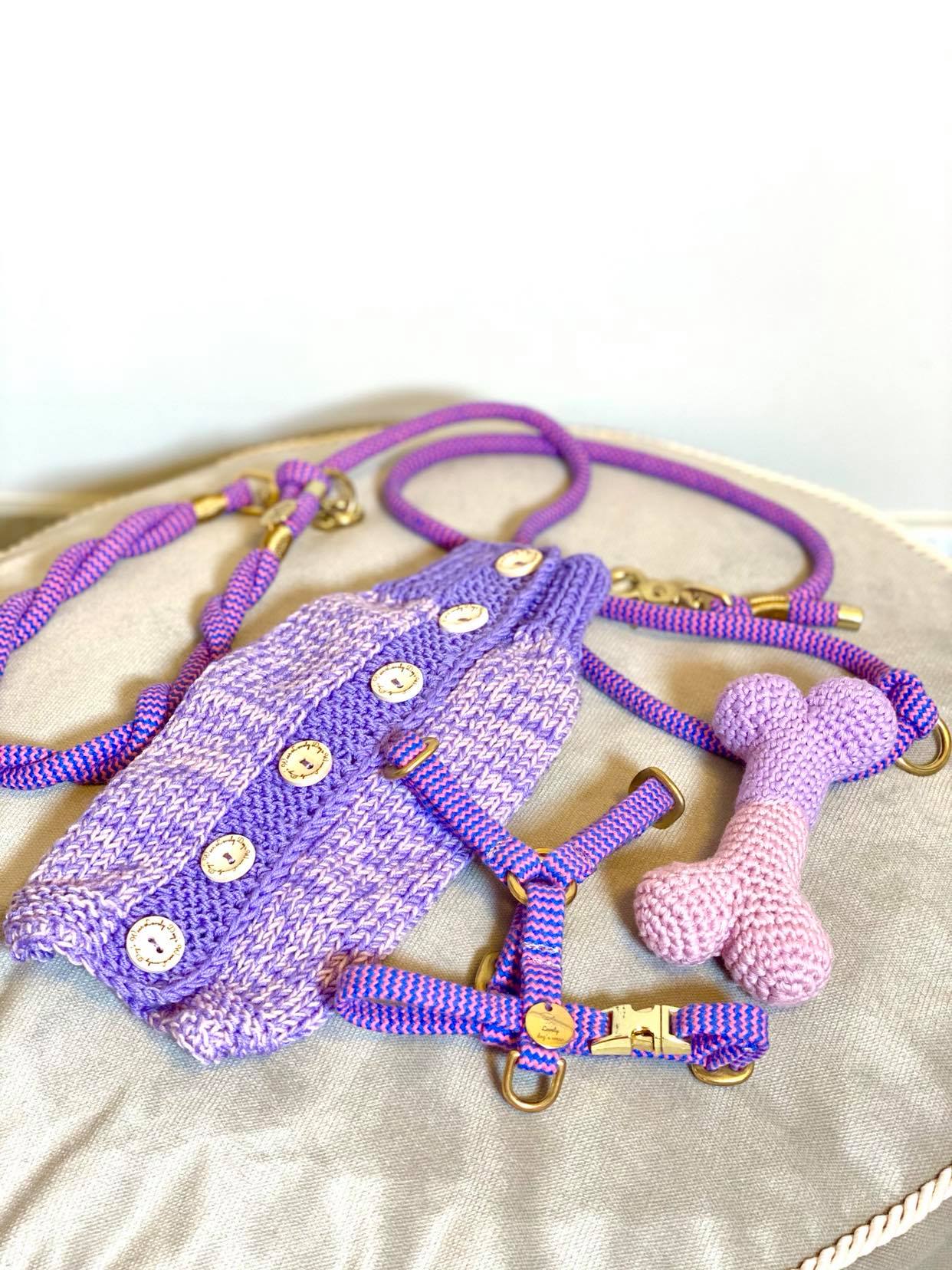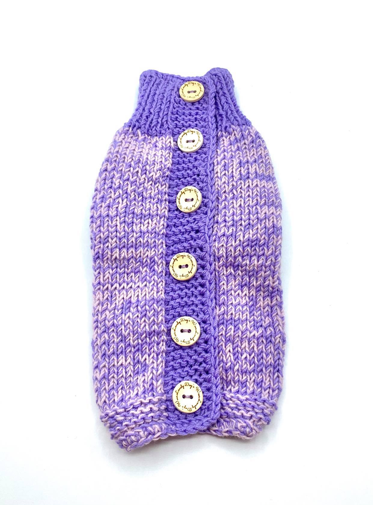 Sweterek wykonany ręcznie z mięciutkiej, naturalnej, ciepłej wełny z Merynosów. Wełna ta, jest miła w dotyku, elastyczna, co ułatwia nam zakładanie sweterka na psiaka. Polecamy w komplecie ze smyczą i szelkami. Standardowo bez rękawków, możemy wykonać z rękawkami.