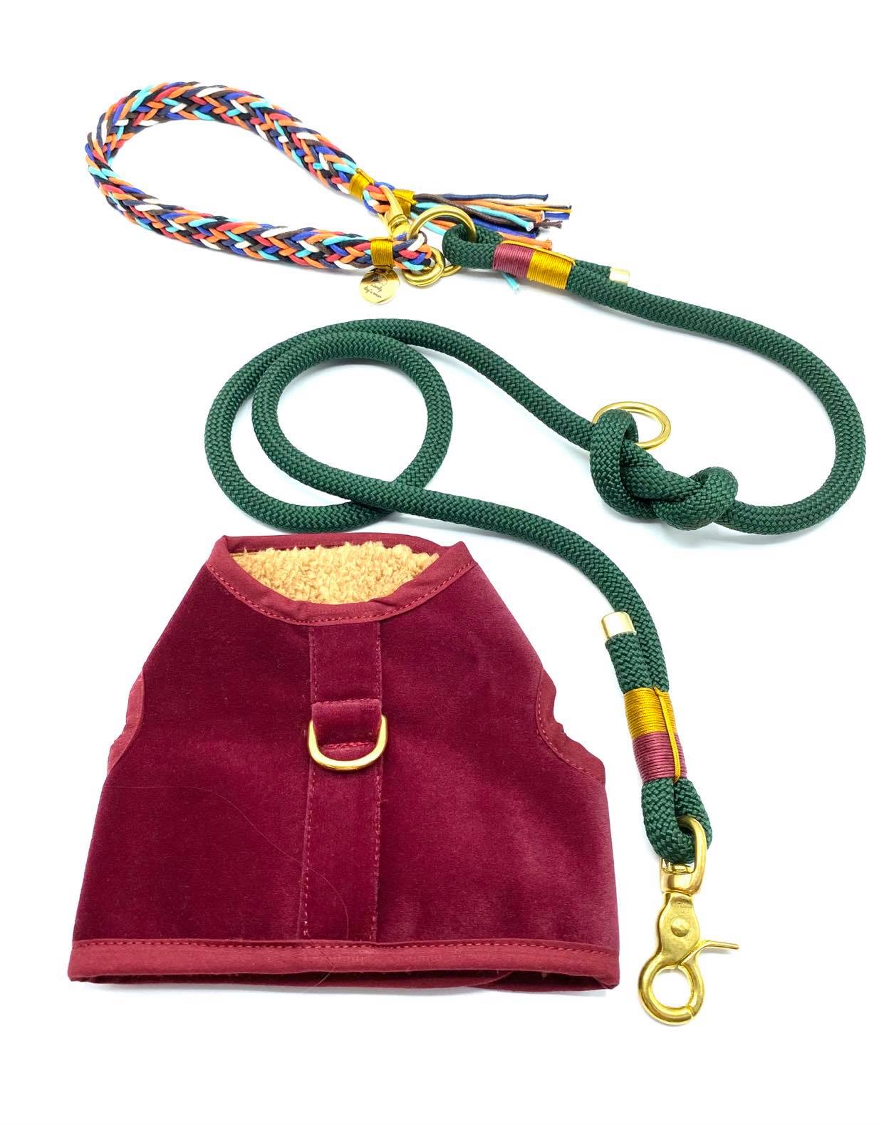 Miękkie , wygodne szelki, kamizelka ocieplane wykonane z ciepłego eleganckiego weluru podszyte ciepłym futerkiem dla marznących psiaków. Zapinane są na rzepy, które pozwalają na regulację, gdy piesek rośnie i są łatwe w zakładaniu. Istotną zaletą jest wykorzystywanie do ich produkcji okuć najwyższej jakości. Okucia, których używamy wykonane są z elementów stali nierdzewnej o podwyższonej wytrzymałości oraz z mosiądzu ( zalecane!) Posiadamy również okucia czarny mat i kolor różowego złota. Szelki pięknie komponują się ze smyczą z liny z serii Boho czy z liną bawełnianą . Wykonujemy standardowe rozmiary, jednak możemy wykonać na konkretny podany wymiar.